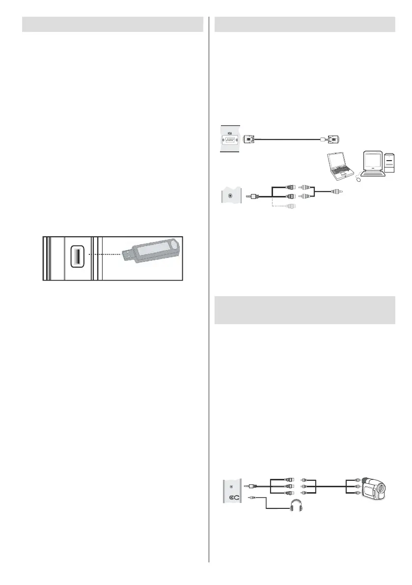 U kunt USB-apparaten aansluiten op uw tv via de •