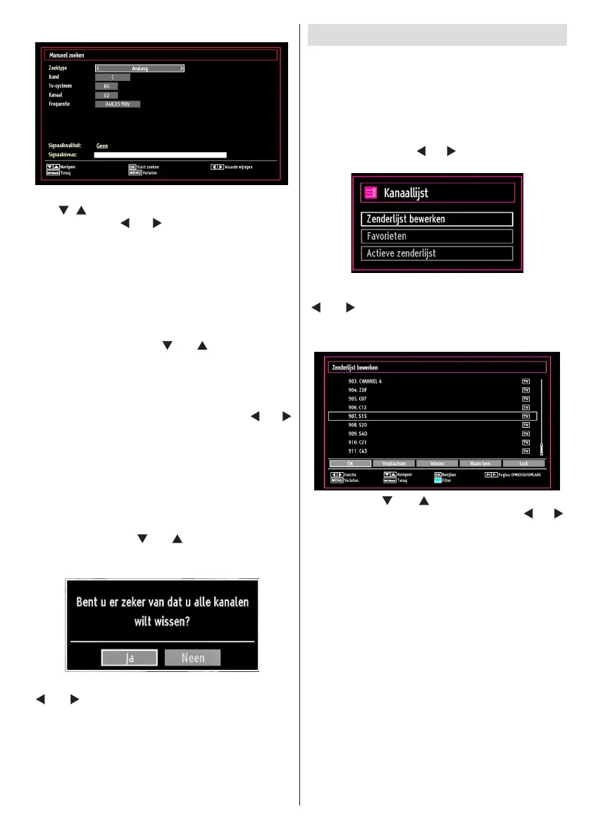 “ ” of “ ” en OK toetsen om Zenderlijst bewerken