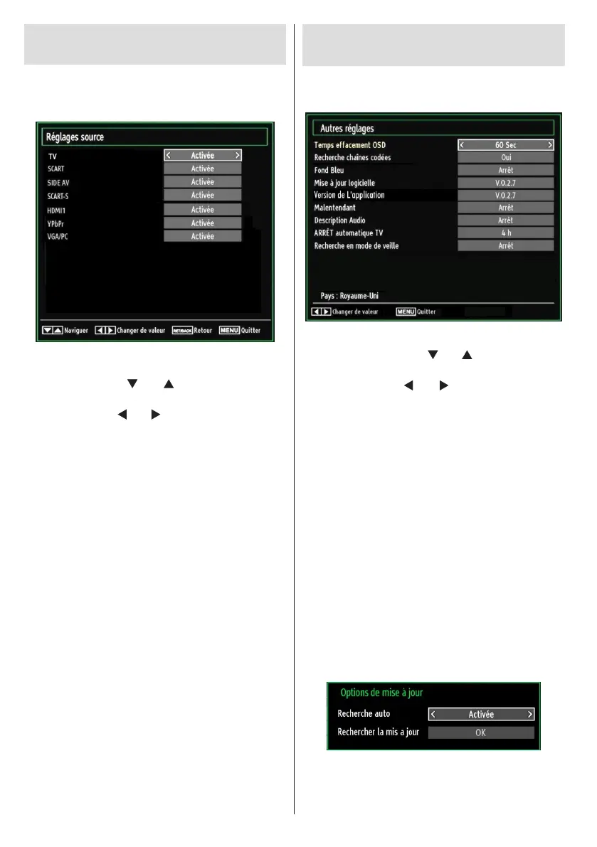 sélectionnées. Le téléviseur ne basculera pas vers les