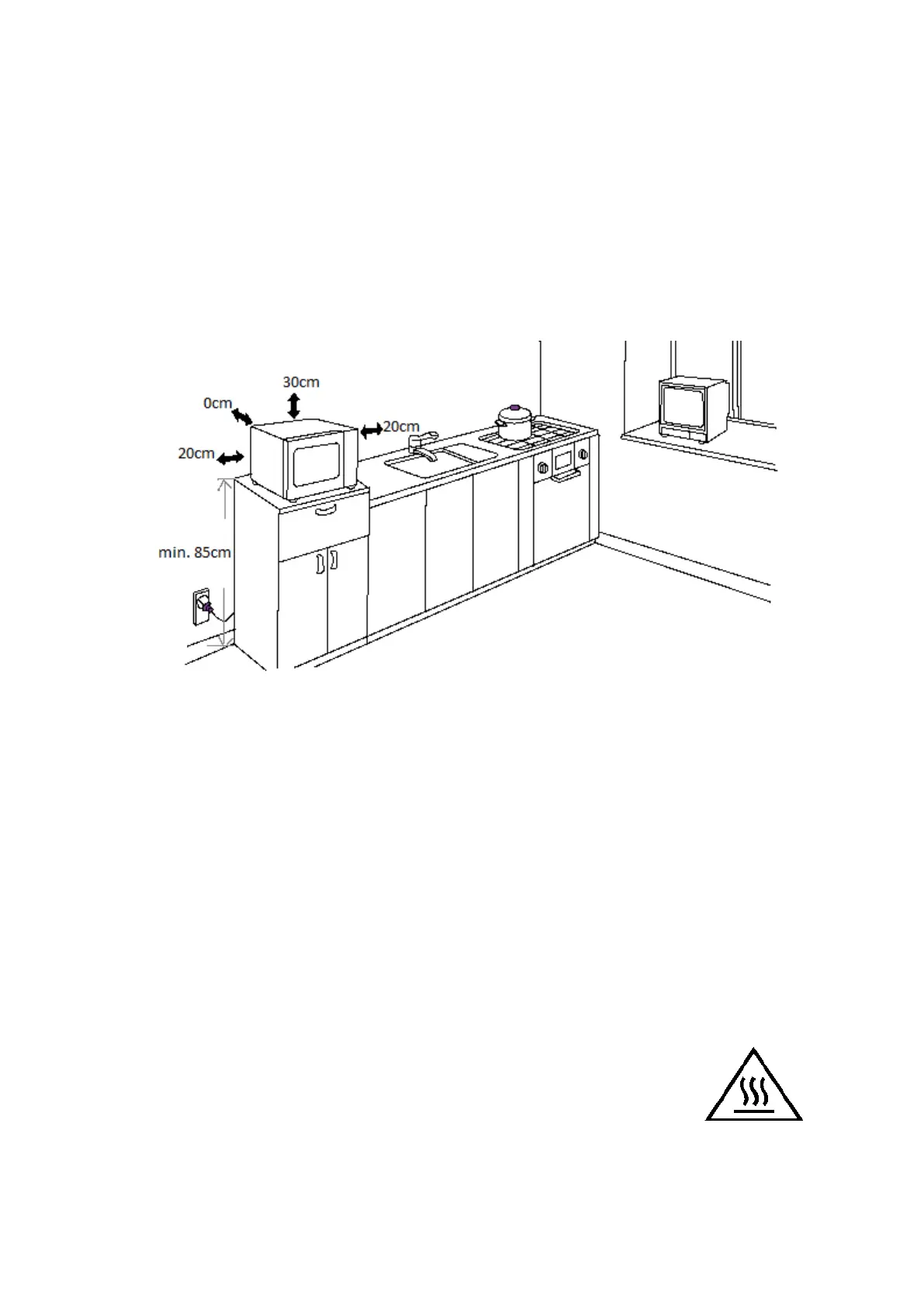 1) Le four à micro-ondes doit être placé sur une surface située au moins à 85 cm du sol.
