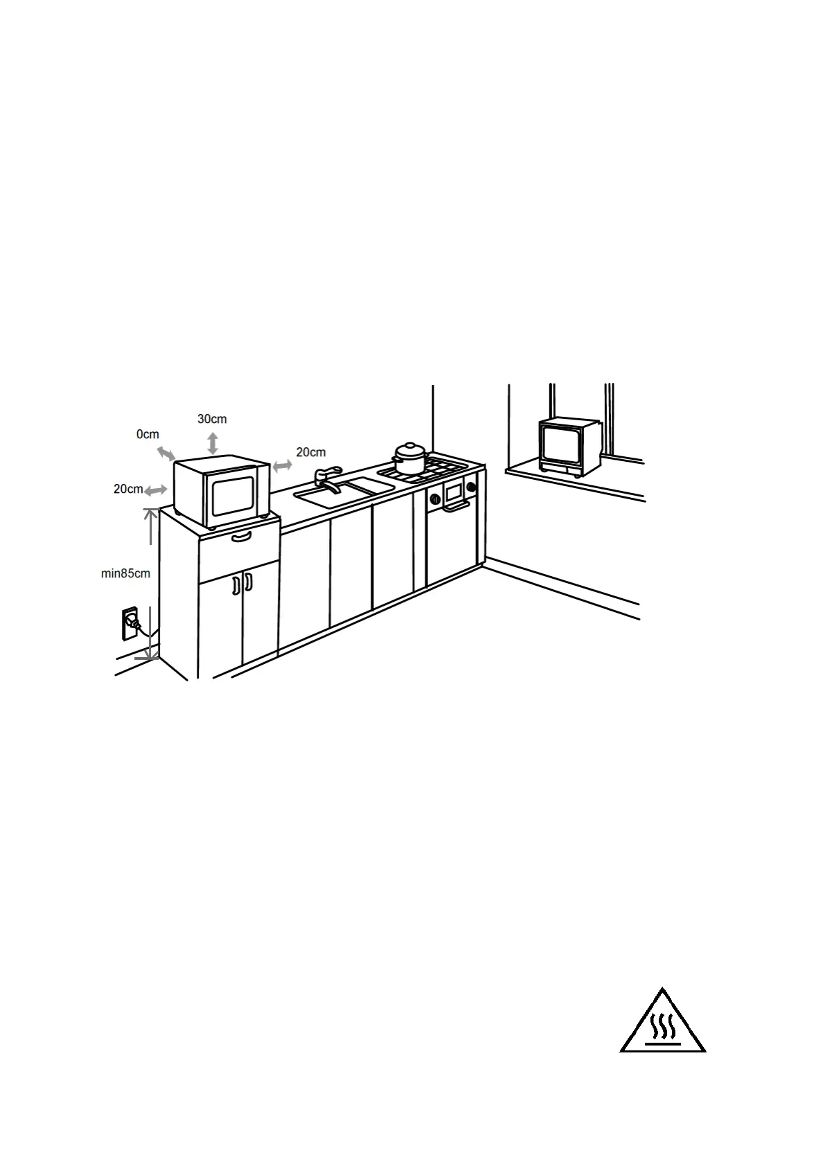 minimaal 30 cm. vrij boven de oven en minimaal 20 cm. vrij aan beide zijkanten van