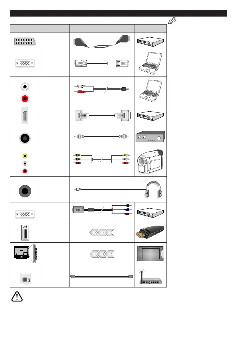 If you want to connect a device to the TV, make sure that both the TV and the device are turned off before making