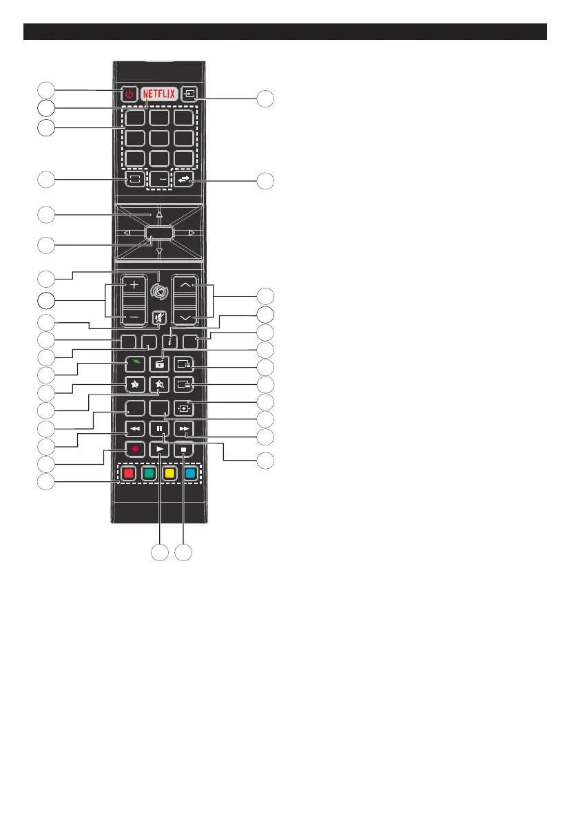 1. Standby: Schaltet das Fernsehgerät Ein / Aus