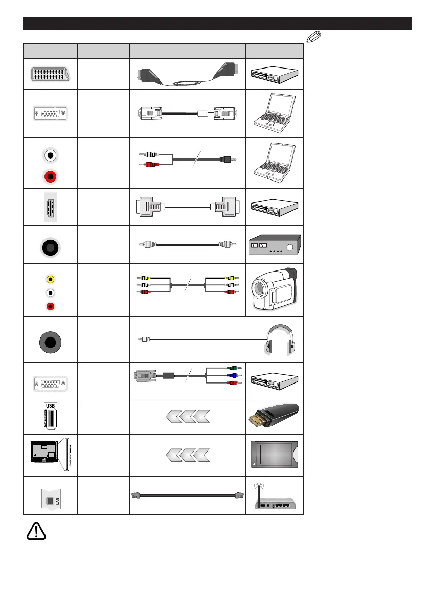 If you want to connect a device to the TV, make sure that both the TV and the device are turned off before making