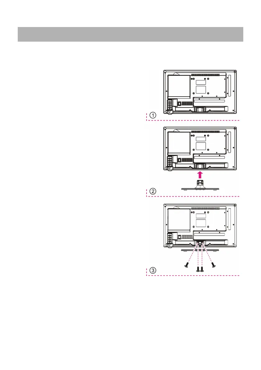 Votre TV est livré avec un pied séparé. Avant d’utiliser le TV montez le pied en suivant les