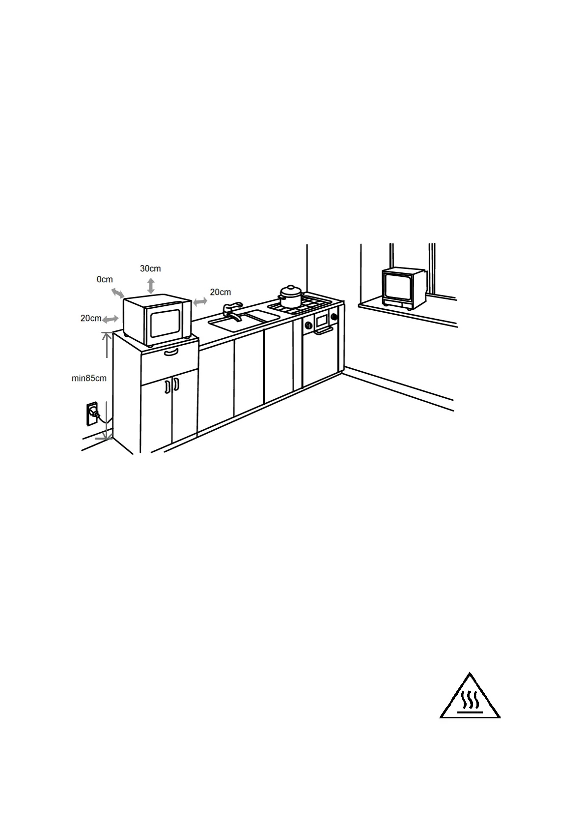 mindestens 30 cm frei über dem Ofen und mindestens 20cm frei auf beiden Seiten