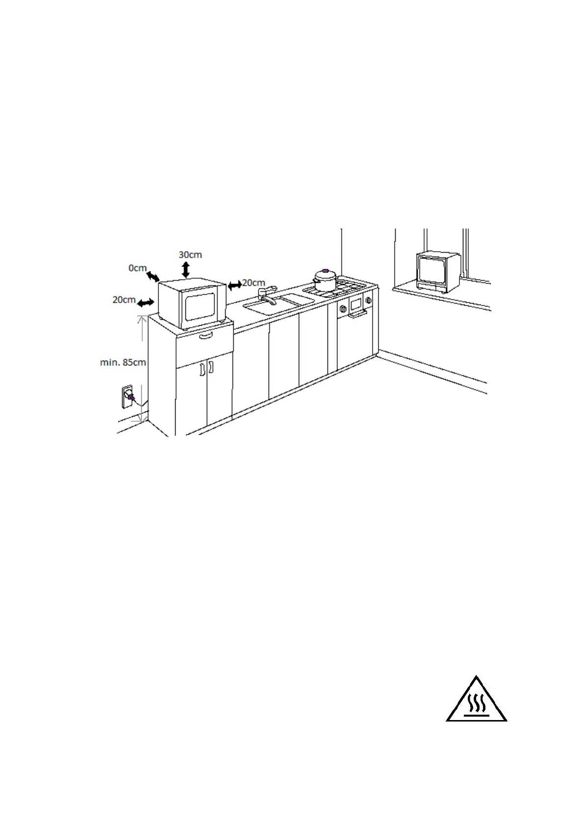 1) Le four à micro-ondes doit être placé sur une surface située au moins à 85 cm du sol.