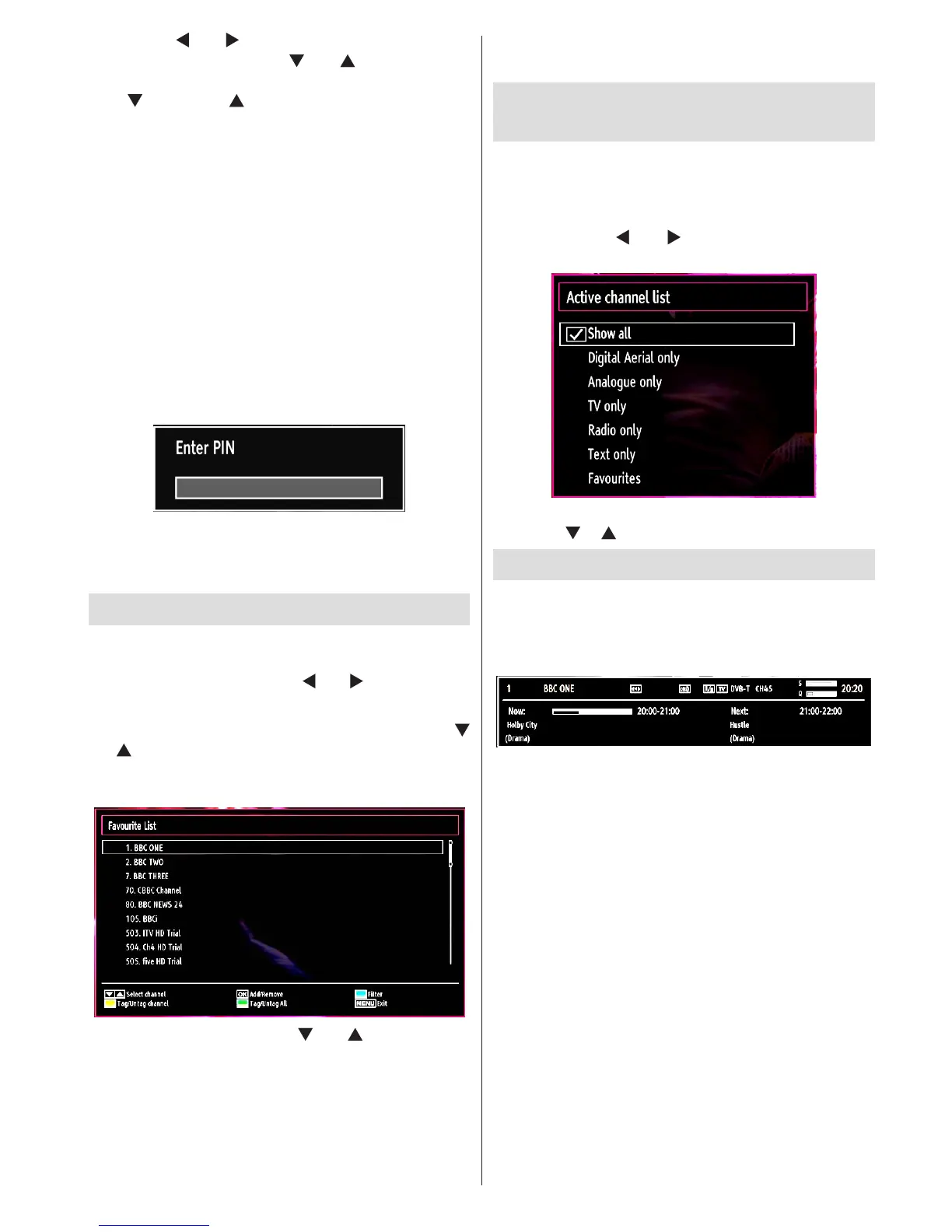 You can set various channels as favourites so that •