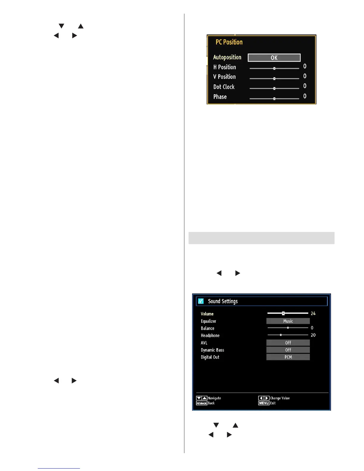 Press “MENU” button and select the Sound icon