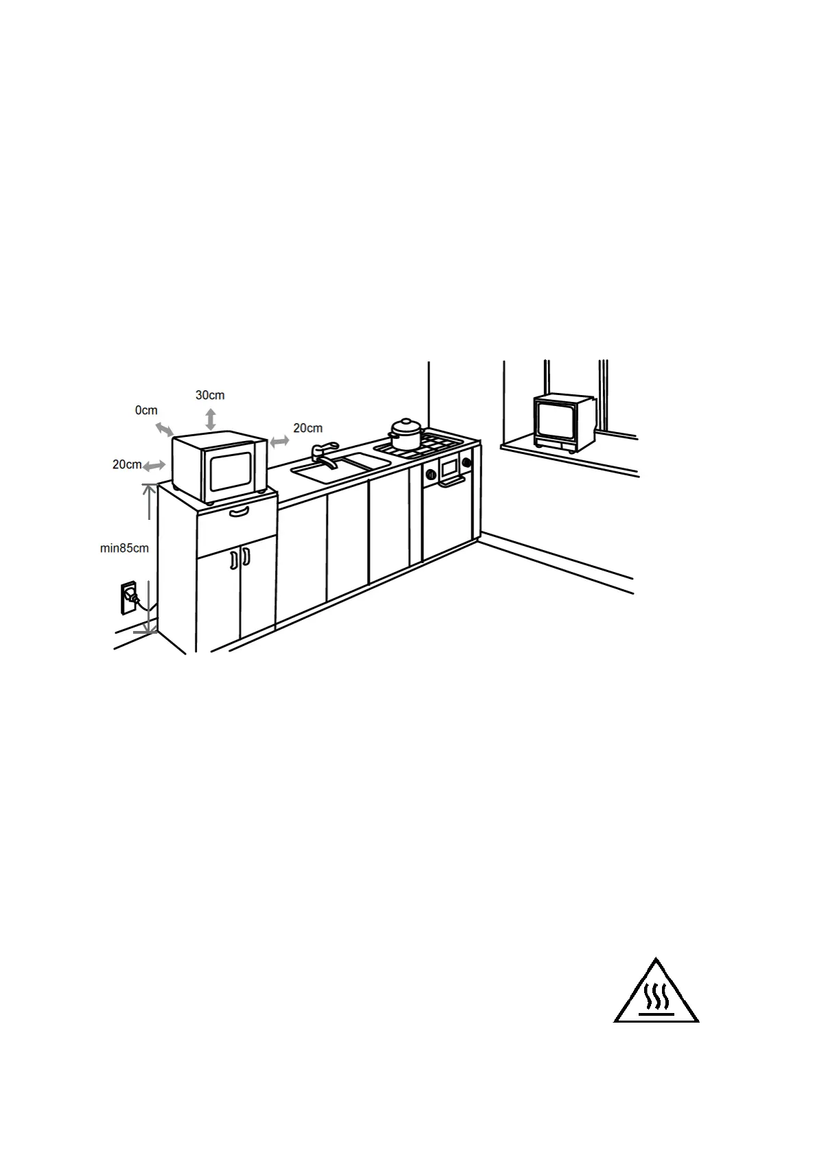 mindestens 30 cm frei über dem Ofen und mindestens 20cm frei auf beiden Seiten
