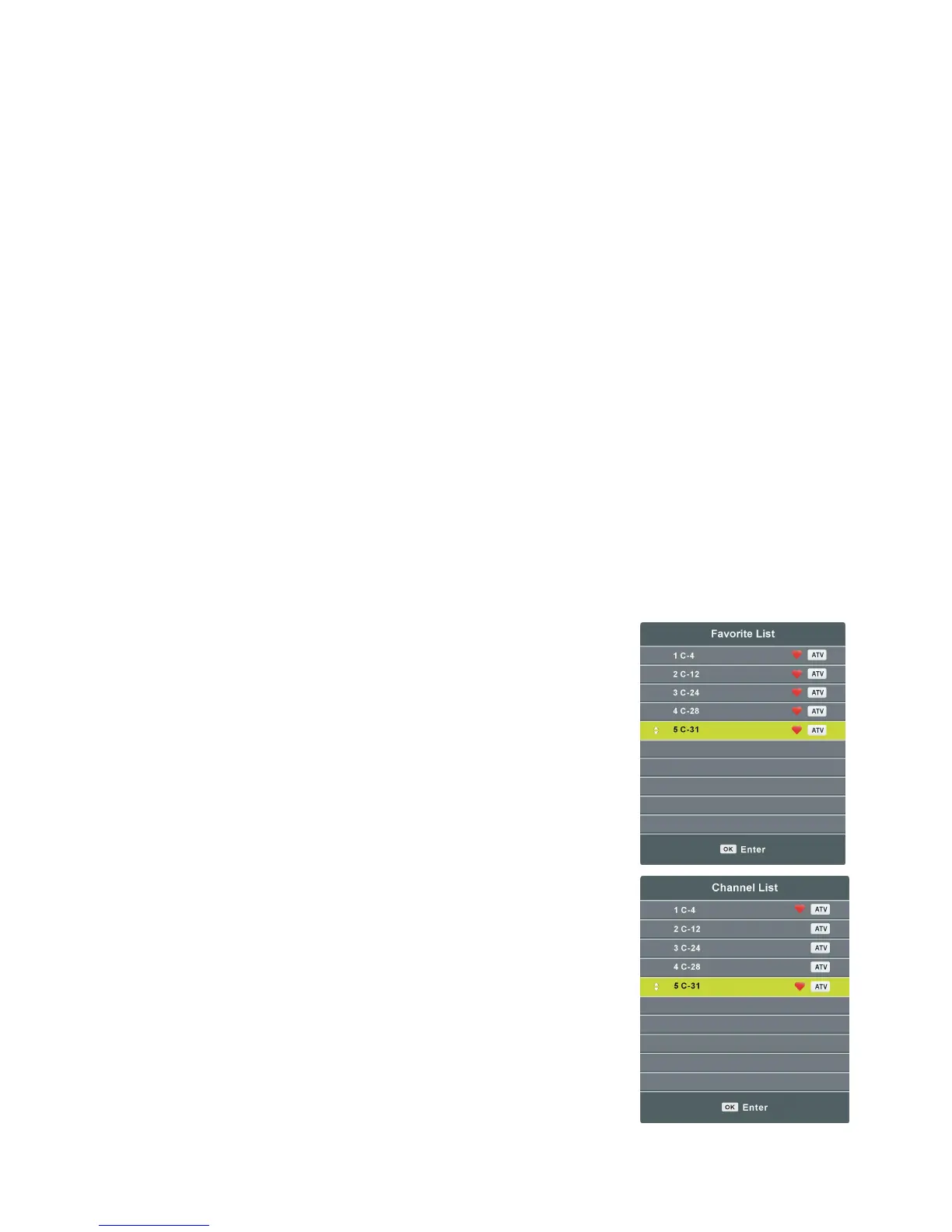 Druk op FAV om de voorkeurzenderlijst op te roepen.
