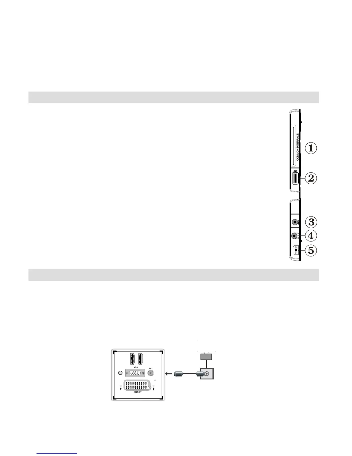 VGA-ingang dient5. om een computer met het TV toestel te verbinden. Verbind de PC-kabel tussen de