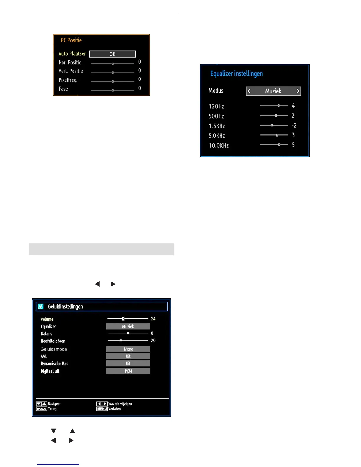 In het equalizermenu, kan de voorinstelling gewijzigd
