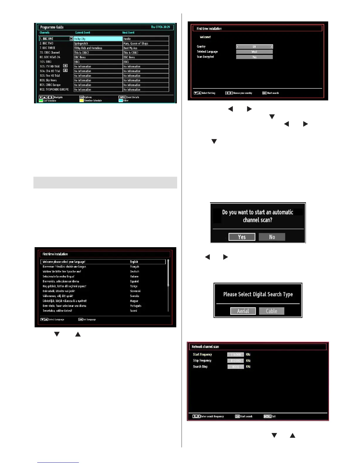Press • OK button on the remote control to continue