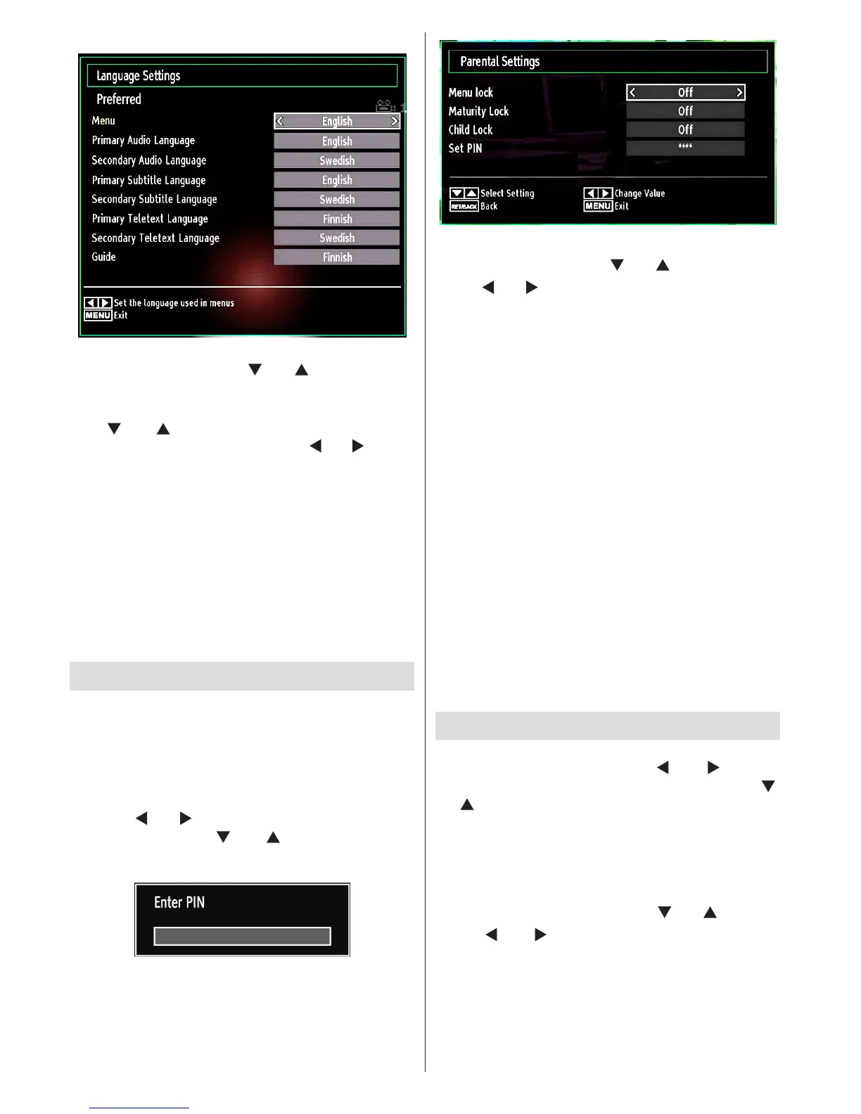 To display parental lock menu options, the PIN number