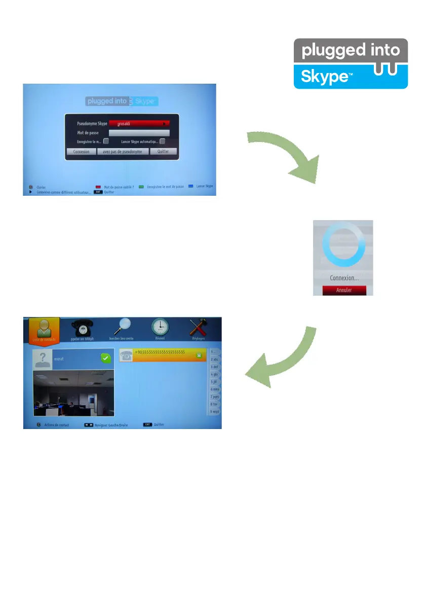 message de statut ainsi que la caméra (si connectée) s'afcheront sur le côté gauche de l'écran.