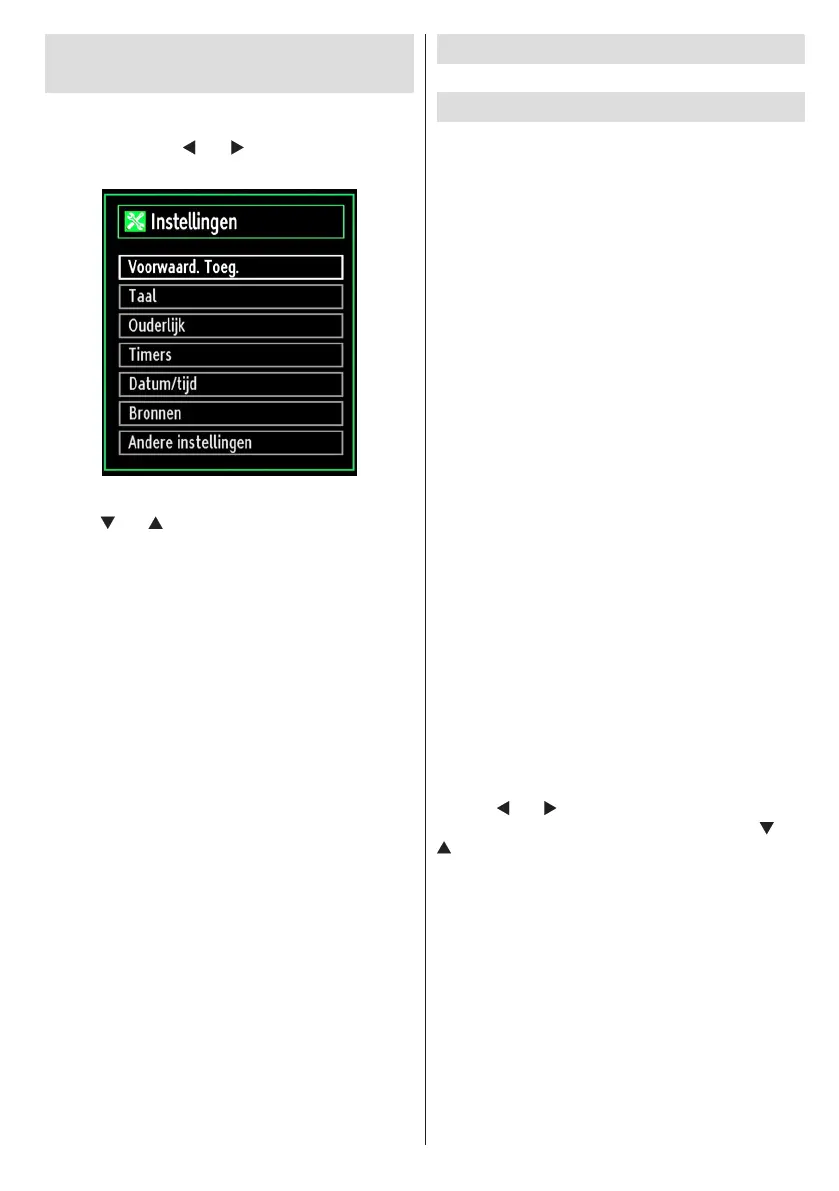 krijgen tot het menu ‘Instellingen’. Gebruik de “ ” of “