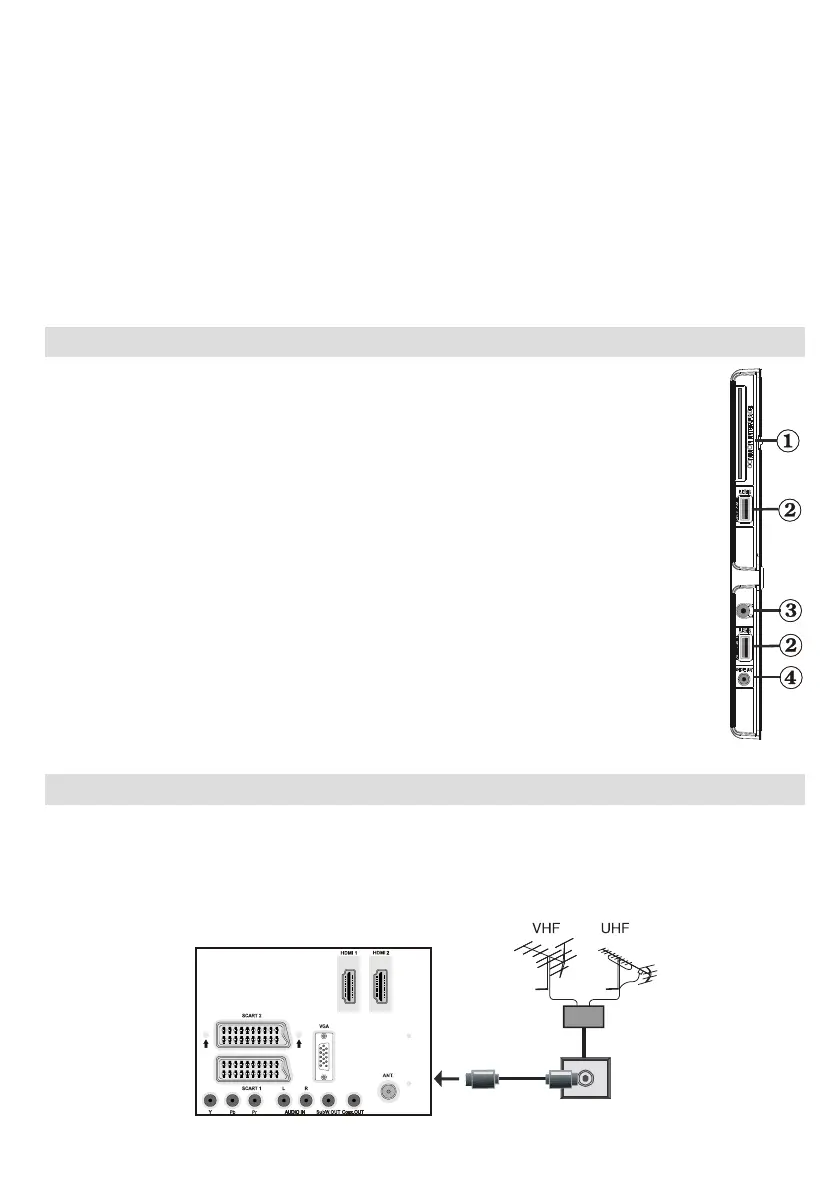 to the television with an appropriate antenna cable, as shown in the illustration in the following pages.