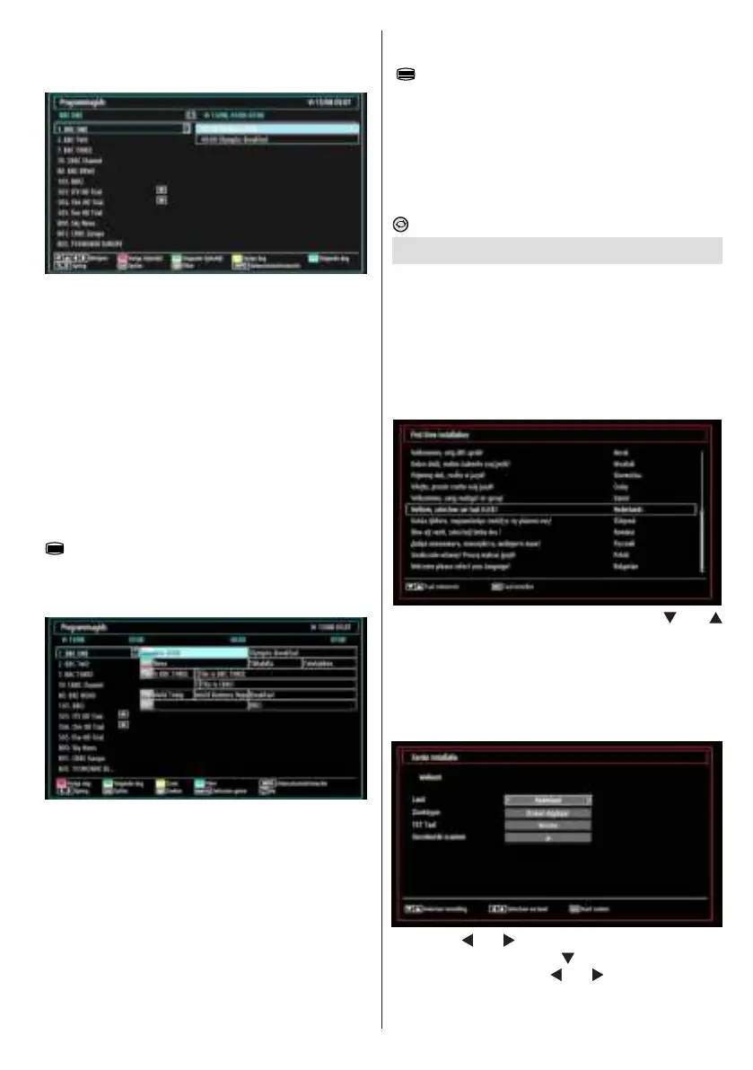 Geel toets (Vorige dag): Geeft de programma’s weer