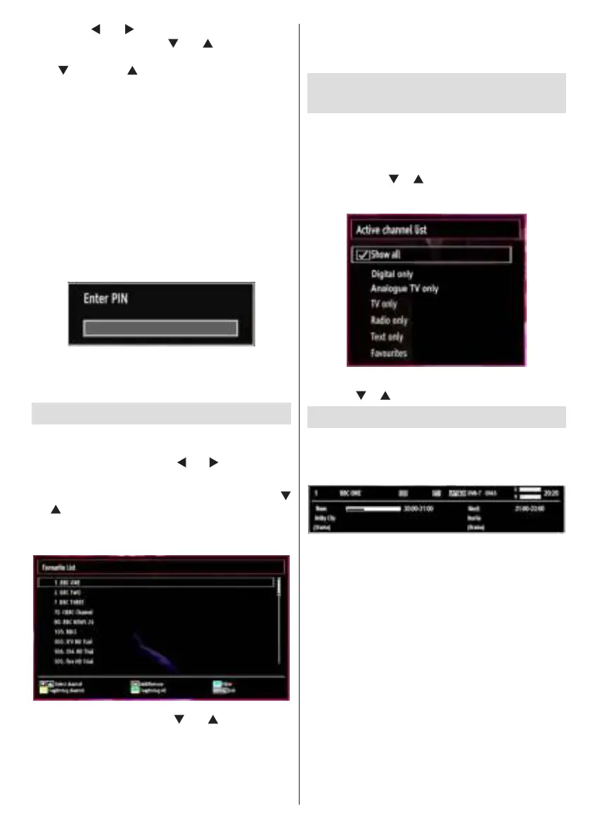 You can set various channels as favourites so that •