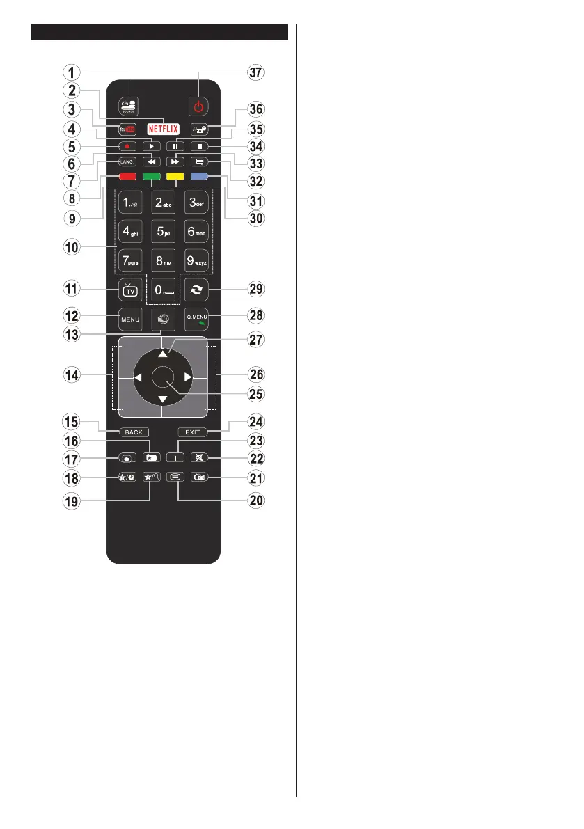 37. Standby: Schaltet des Fernsehgerät Ein / Aus