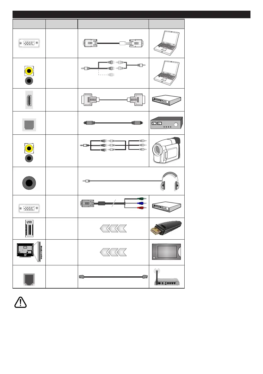If you want to connect a device to the TV, make sure that both the TV and the device are turned off before making