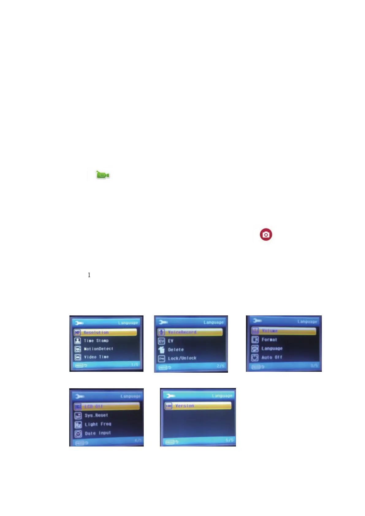 U kunt schakelen tussen de verschillende modi: Video /Foto /Afspelen/Menu, door op de