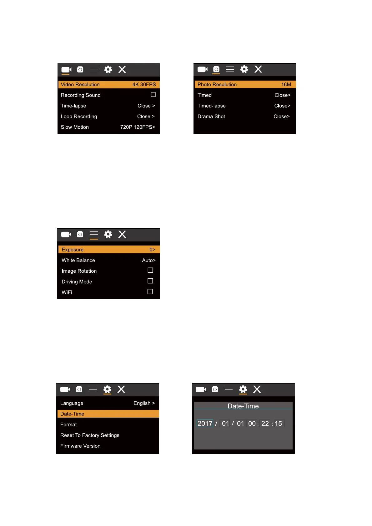 press shutter to enter. Press up/down key to select “date and time” and then press shutter