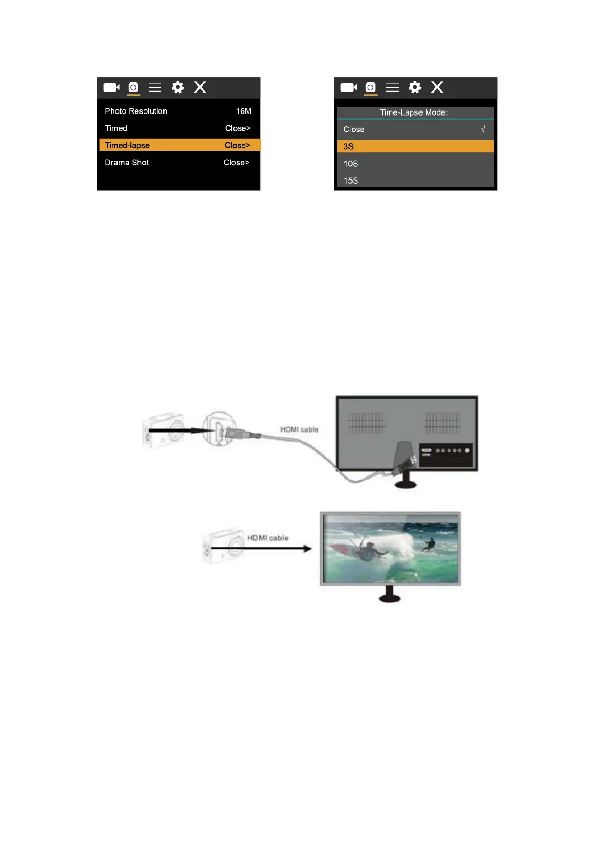 Note: before connecting or removing the HDMI cable, please stop video recording