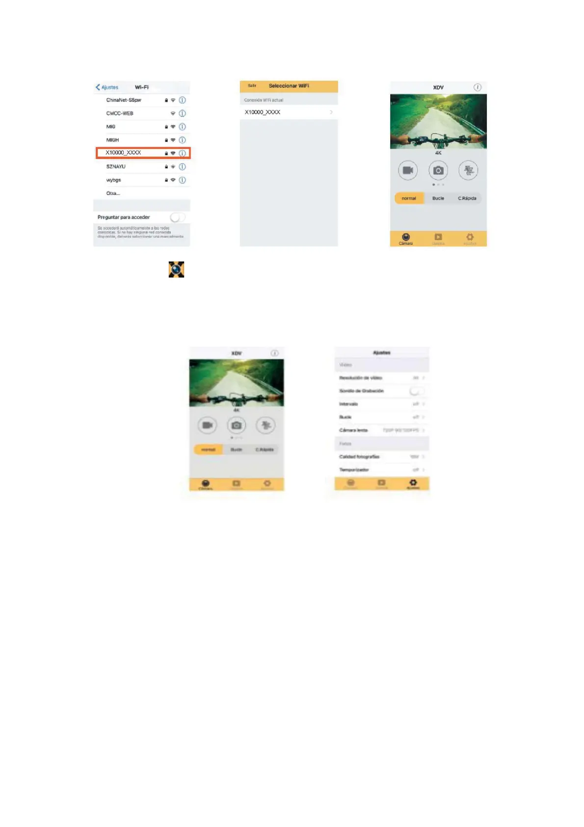 This app shows in the main display 3 options: video, photo and movement. In the bottom