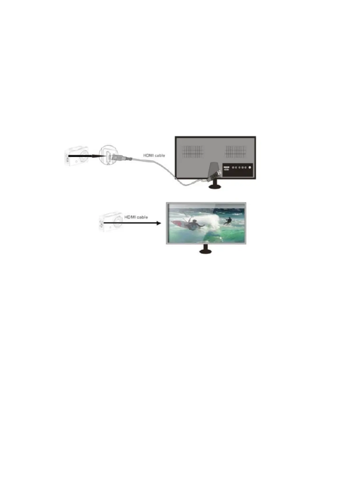 câble HDMI dans la caméra et l’autre dans la prise d’entrée de la TV HD, comme indiqué ci-dessous :