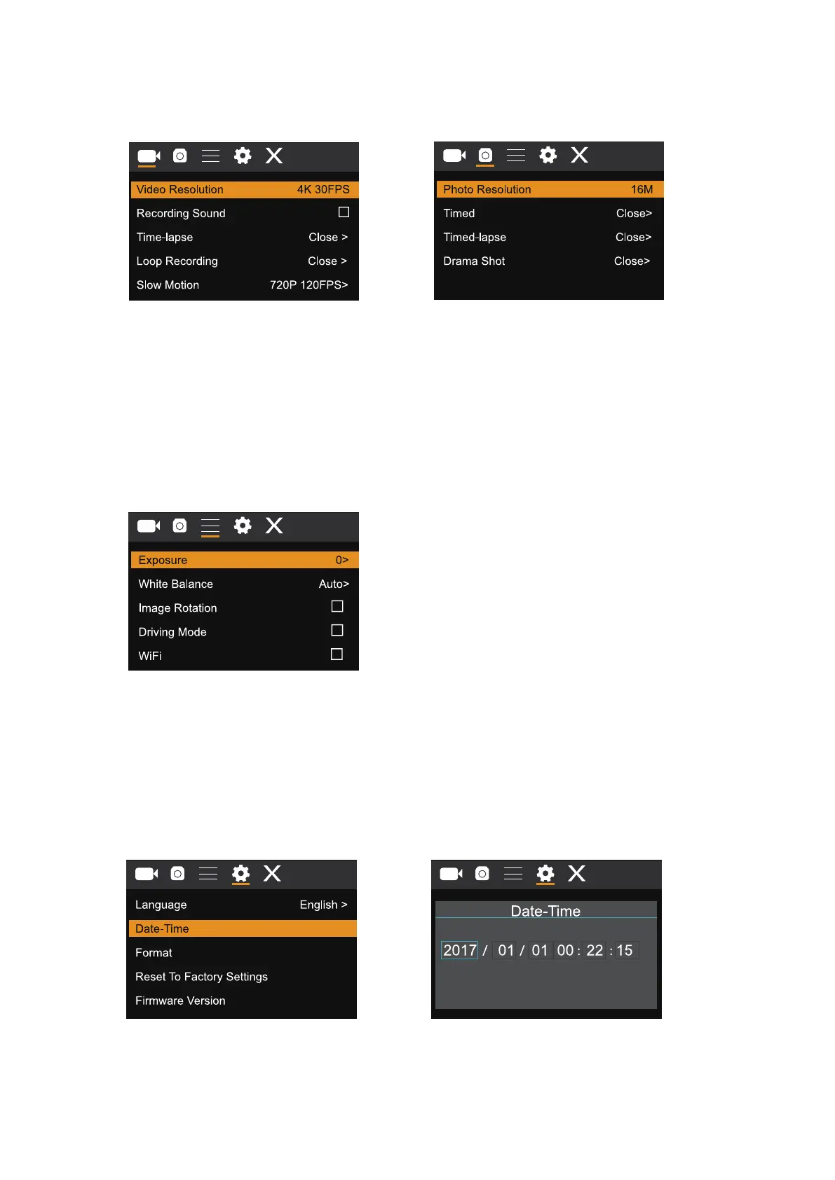 press shutter to enter. Press up/down key to select “date and time” and then press shutter