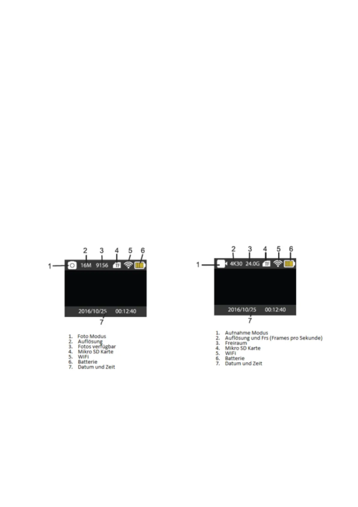 5.1 Status Indikator: Indikator geht an wenn die Kamera eine Video aufnimmt oder