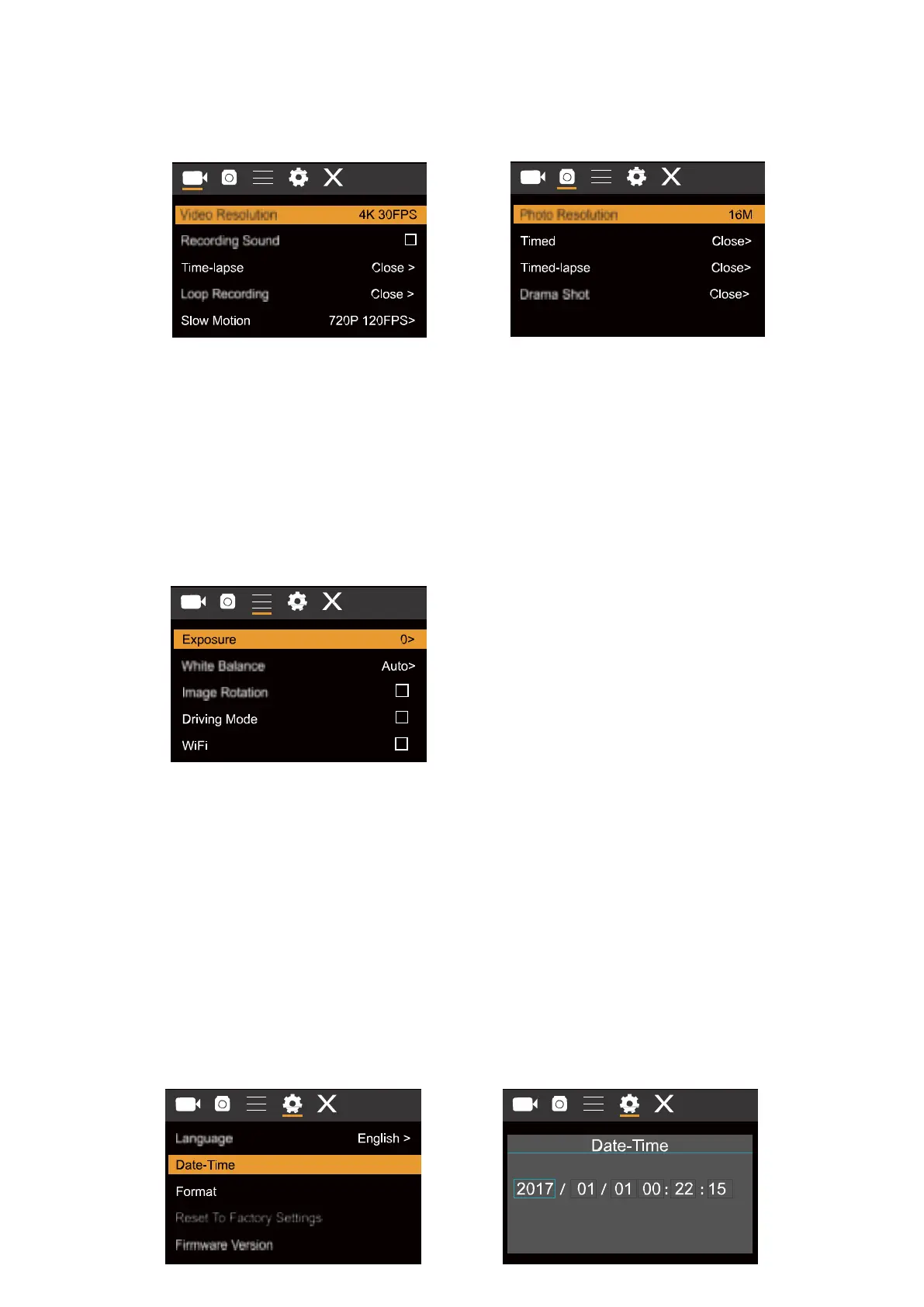 Aufnahme und Foto Menü: