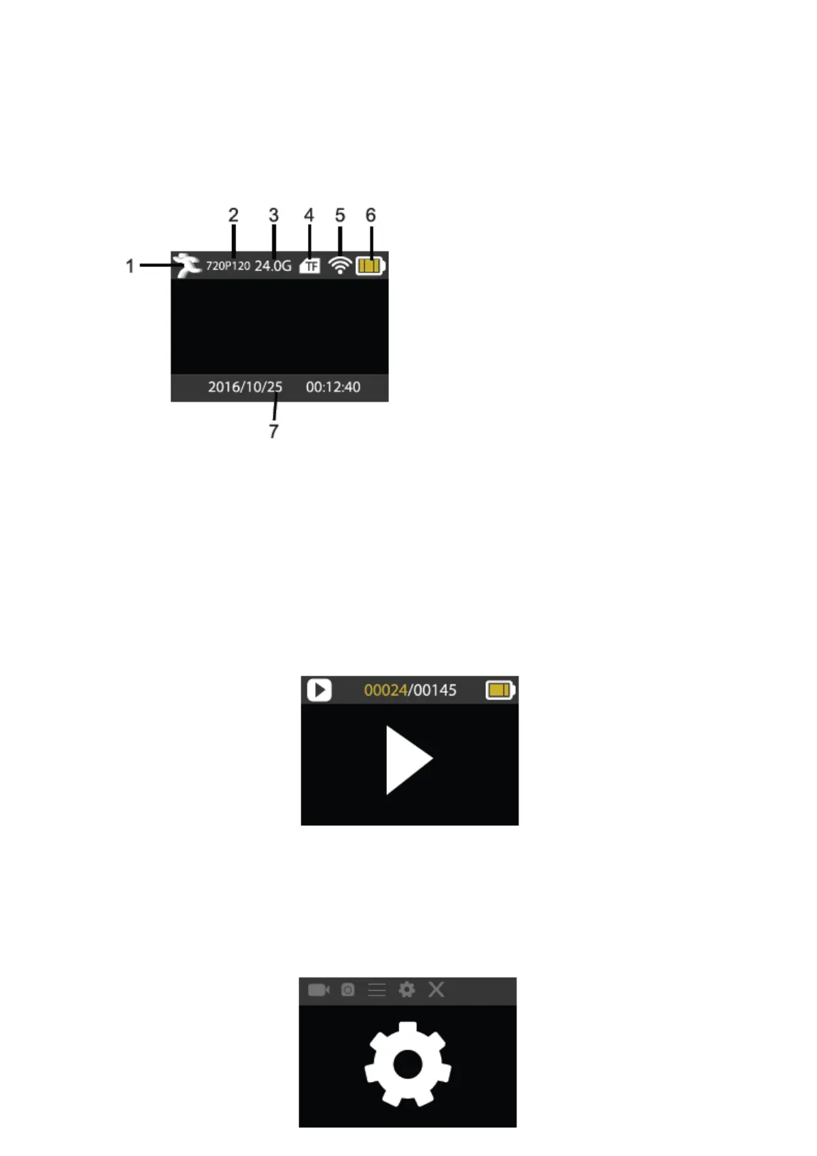 Druk op de Modus knop om de Afspeel modus te openen en door de foto en video bestanden te