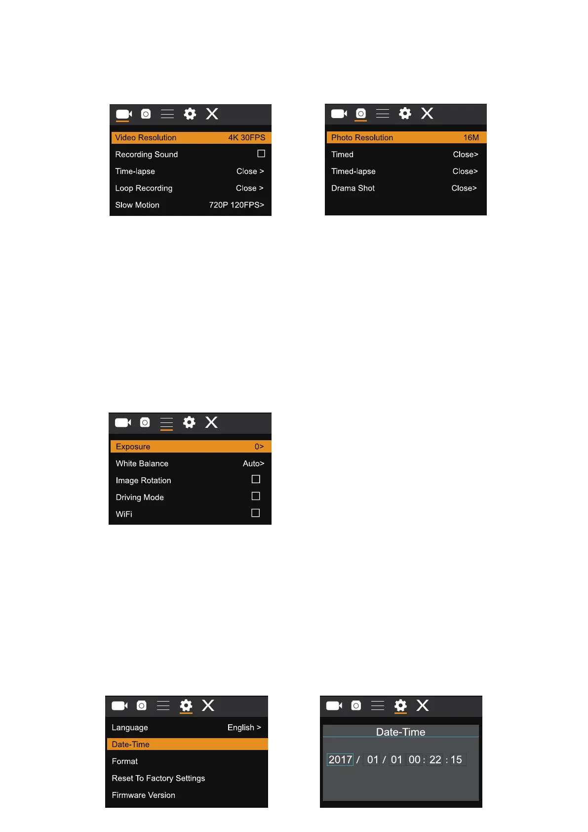 Omhoog/Omlaag knop om Datum en Tijd te selecteren en druk op de Sluiterknop om