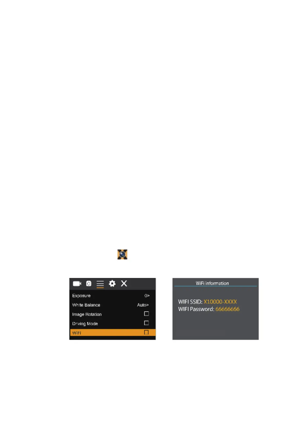 AP signaal “X10000_XXXX” , maak daarna verbinding met de camera tot op het