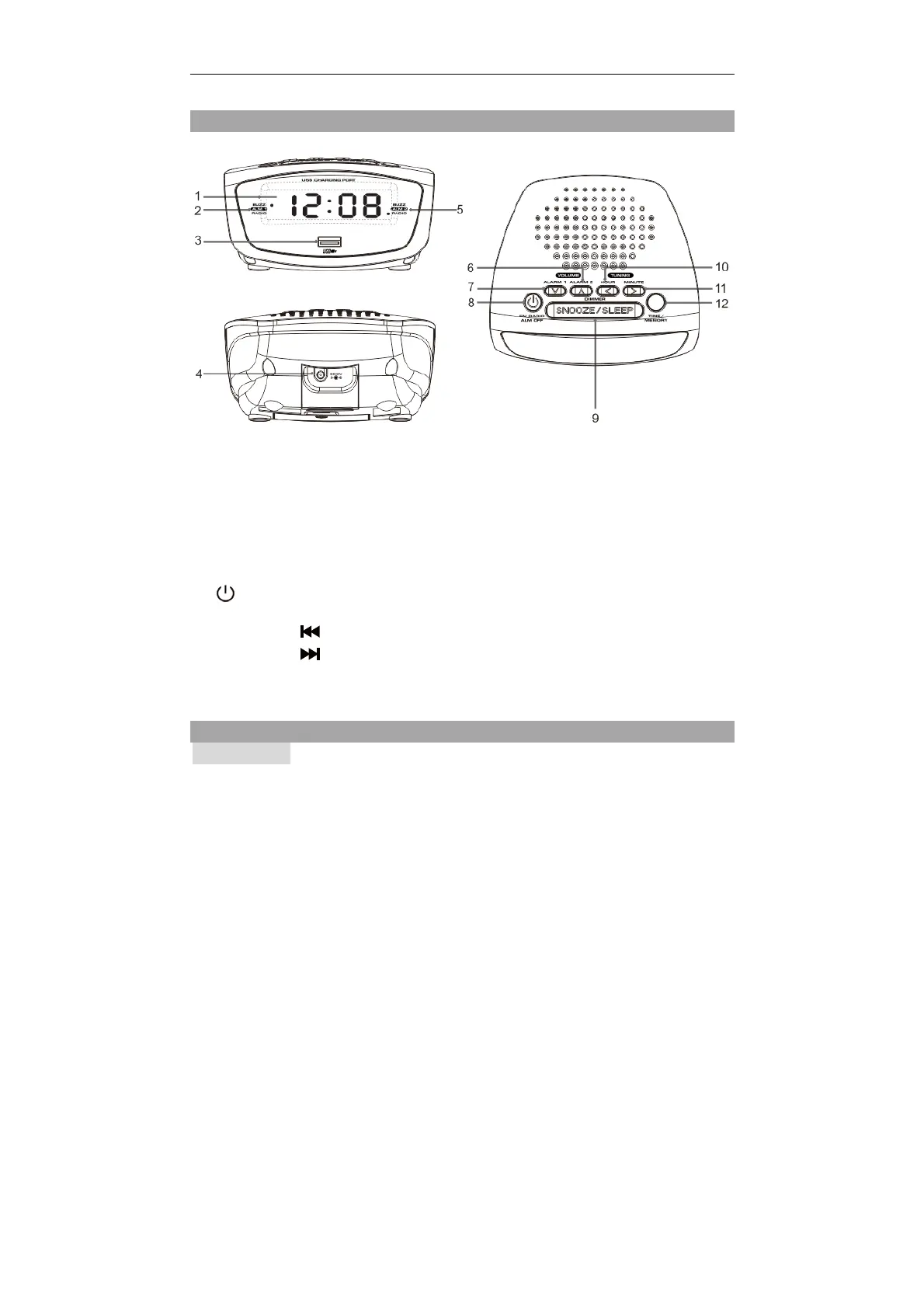 9. SNOOZE knop / SLEEP knop / DIMMER knop