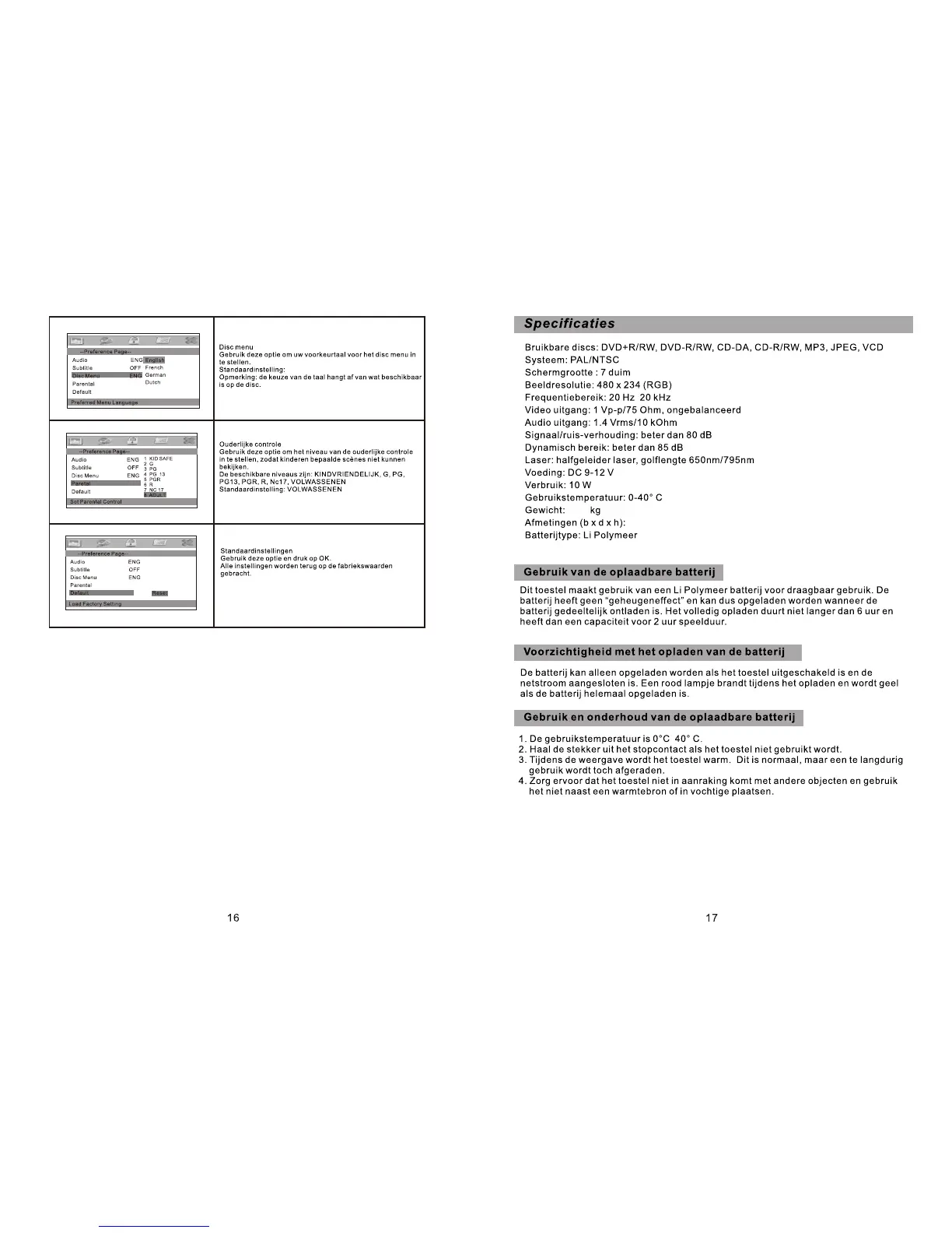 Salora DVP7019 - Rechargeable Battery Information; Battery Usage and Charging Precautions