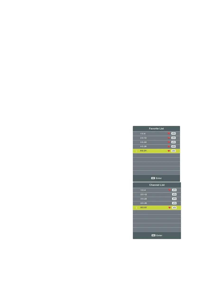- Poussez FAV pour afficher la liste des émetteurs préférés