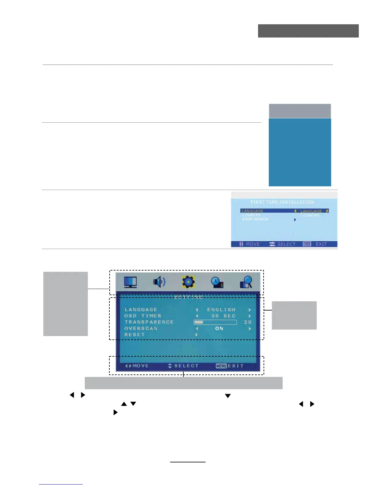Opmerking 2: Gebruik het OSD menu volgens de tips die onderaan gegeven worden.