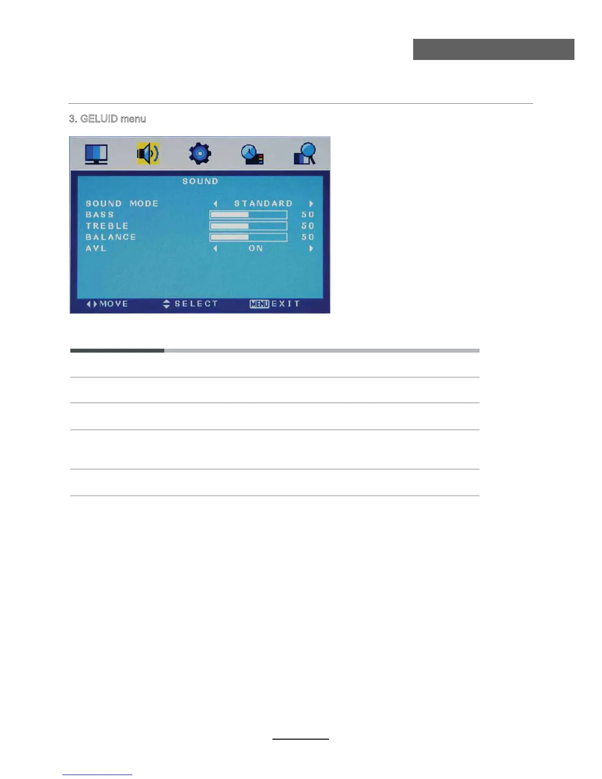 3. GELUID menu