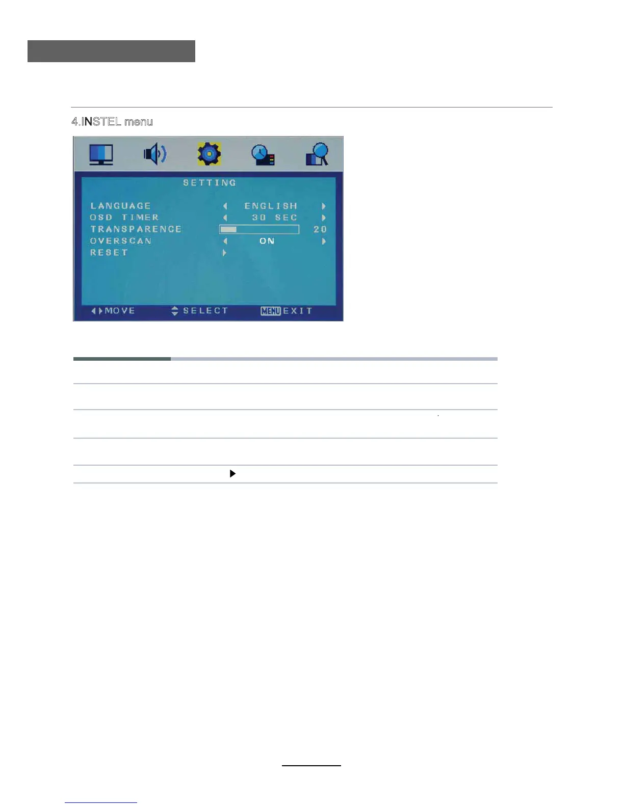 Transparantie Laat toe om de transparantie van het OSD menu op het scherm