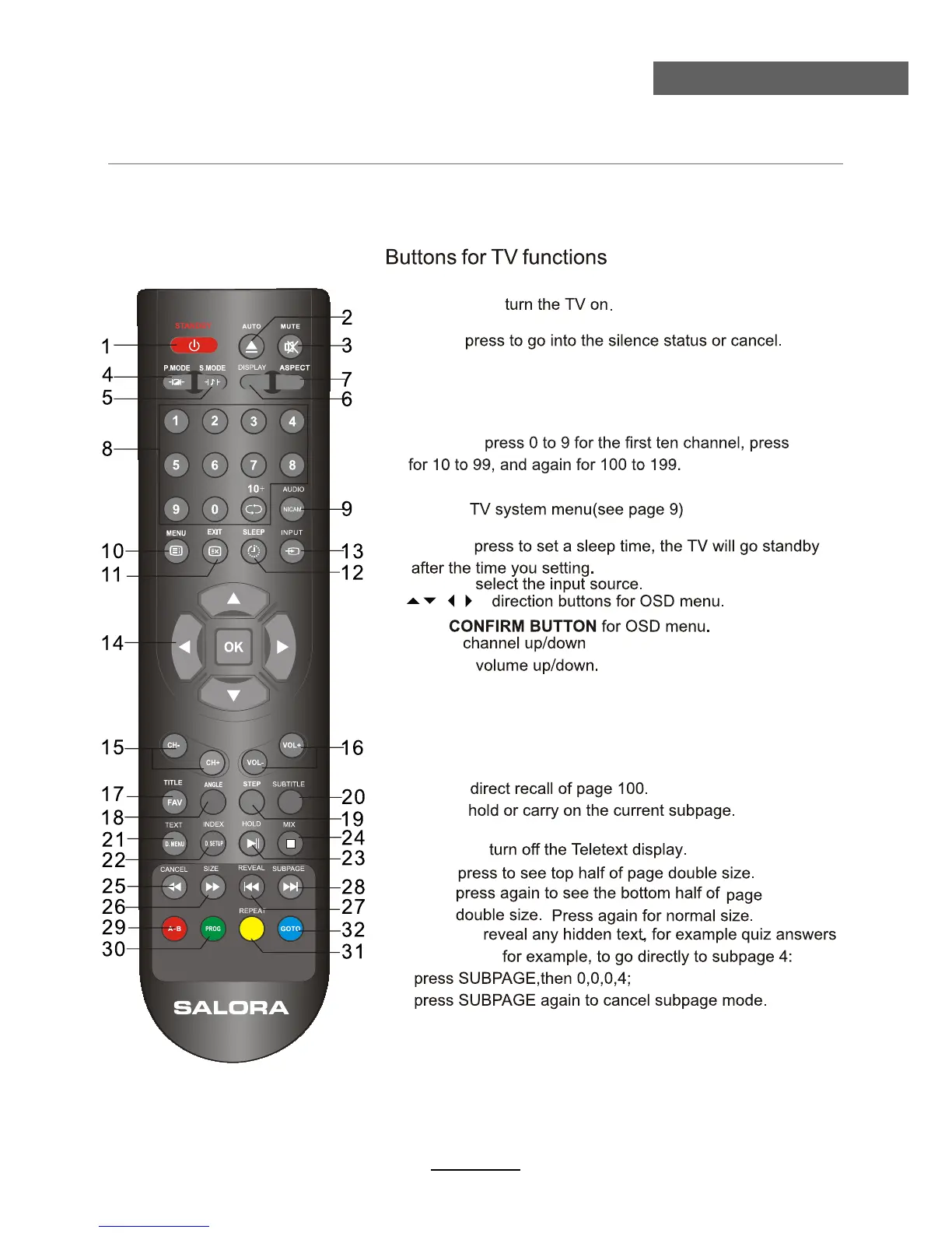 Salora LED1938DVX - Remote Control
