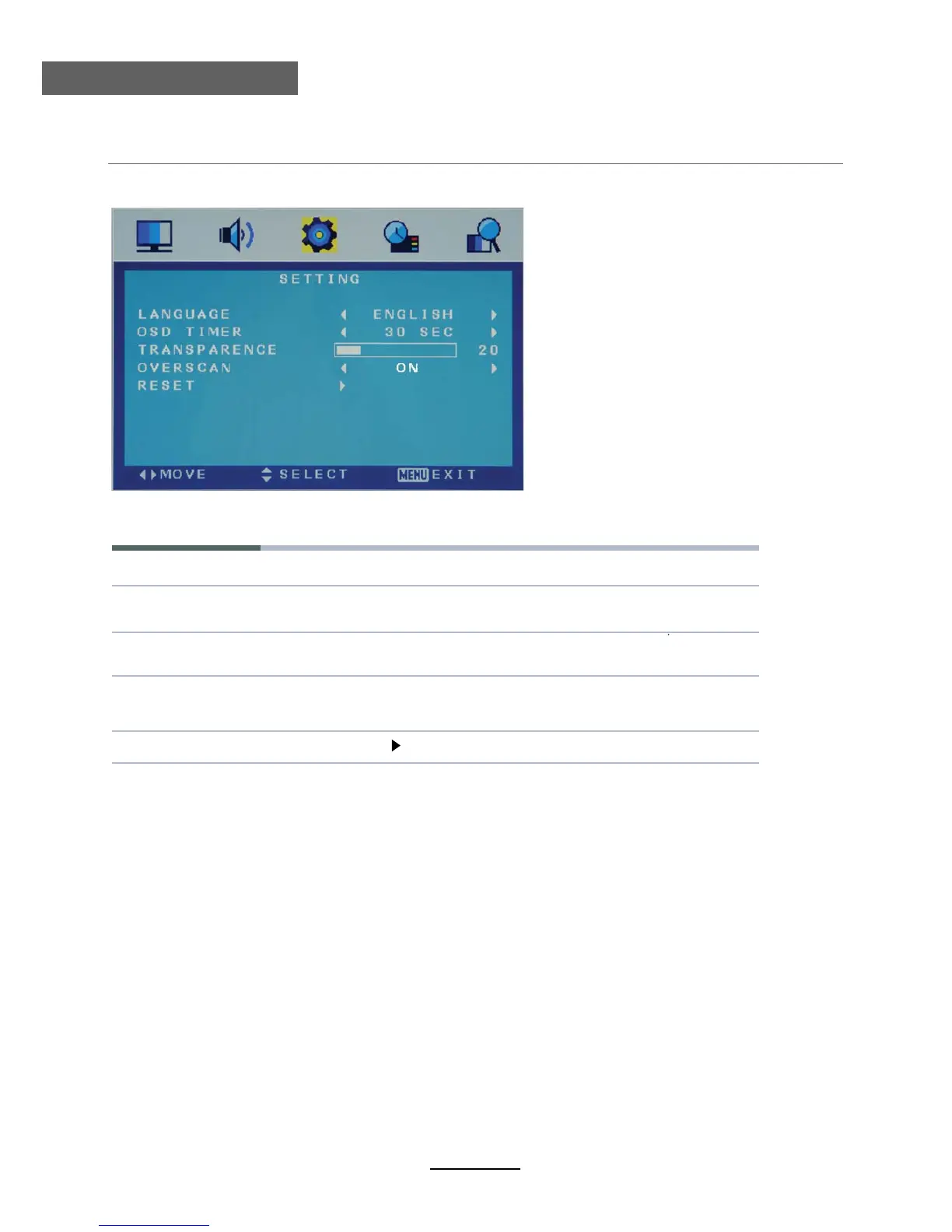 OSD Timer Allows you to select the time for OSD menu displays on the