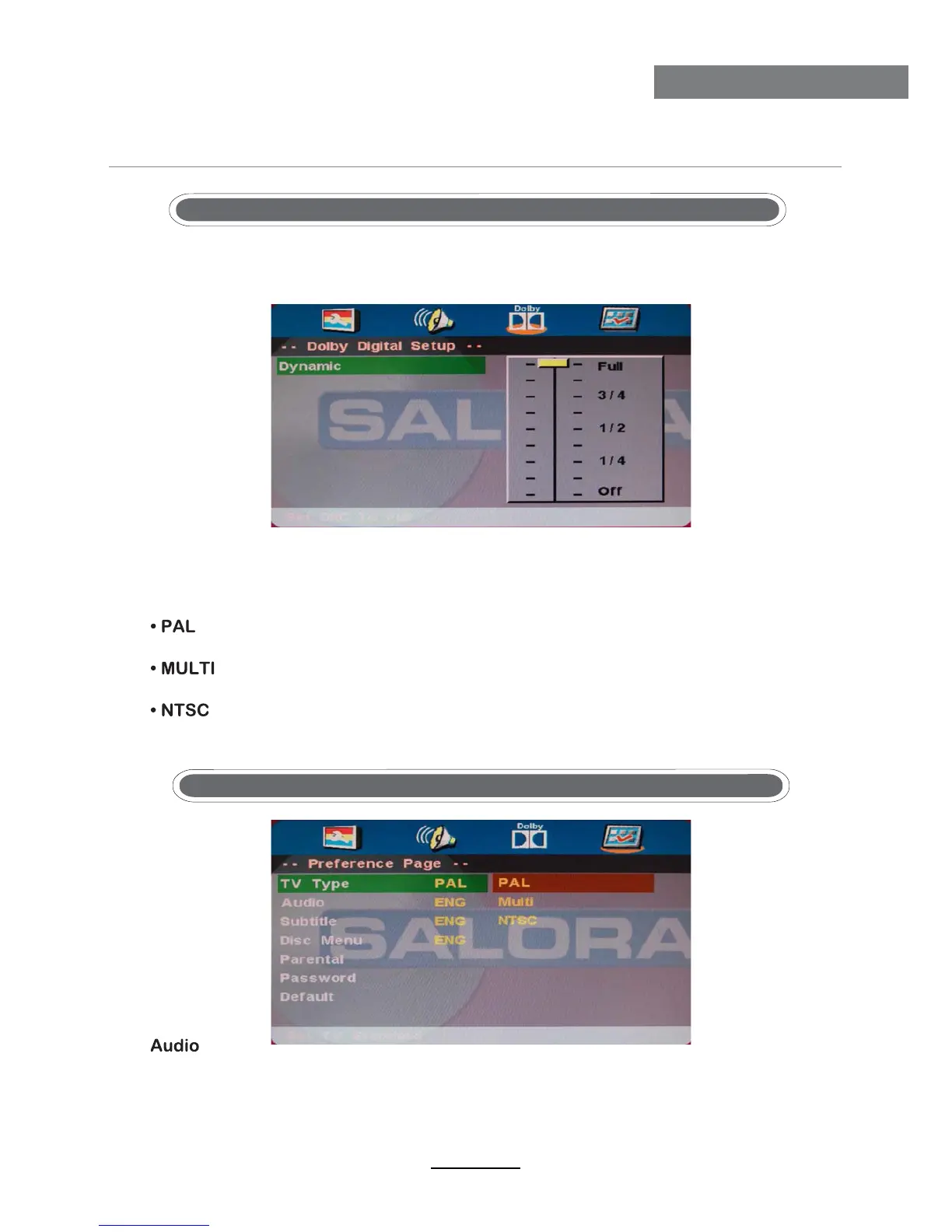 Sélectionnez ceci quand le lecteur DVD est connecté au téléviseur PAL