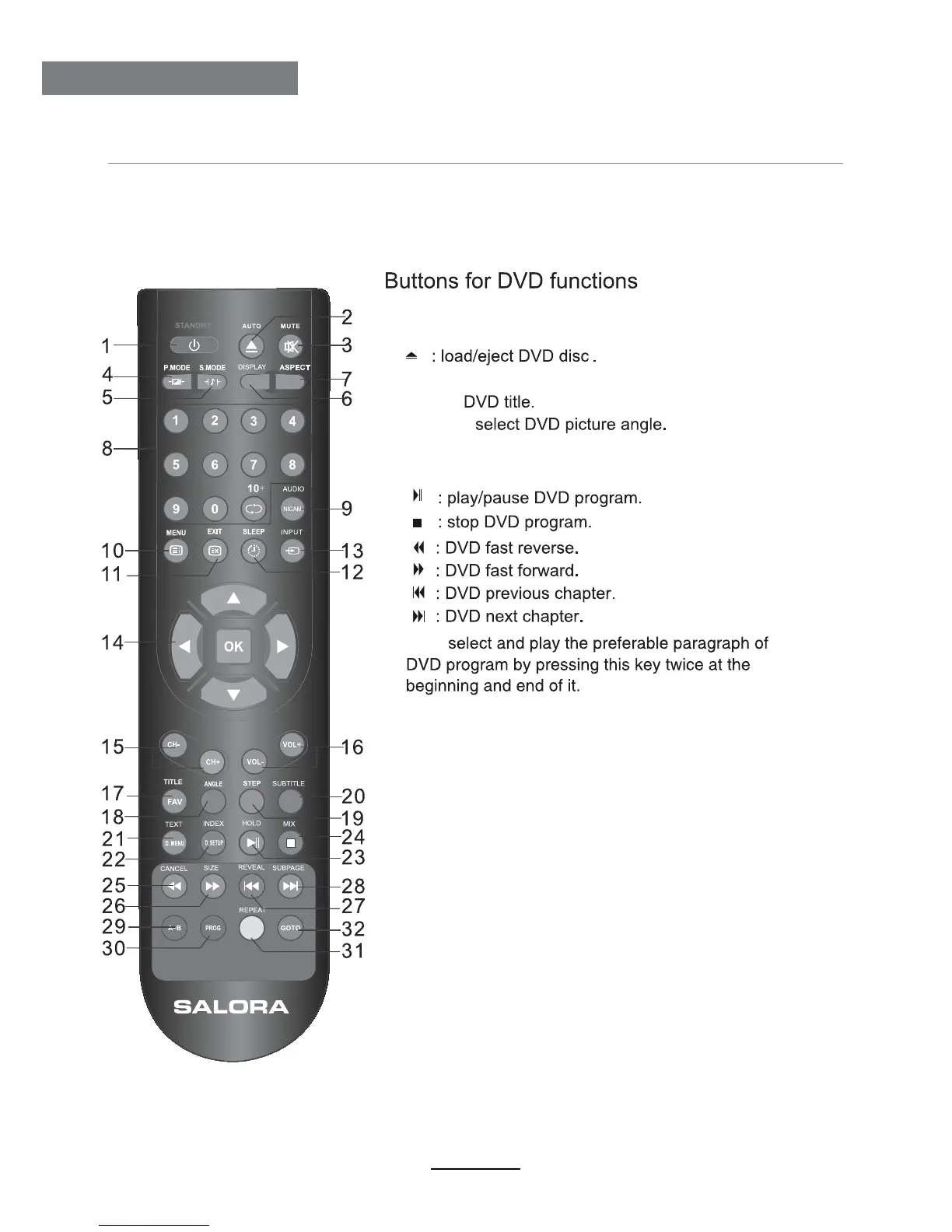 Salora LED1940DVX - Remote Control