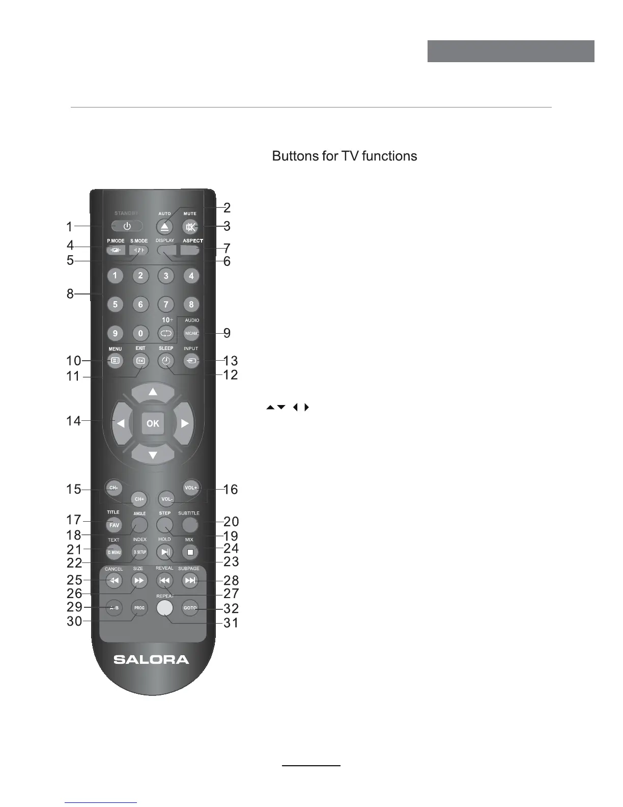 Salora LED1940DVX - Télécommande