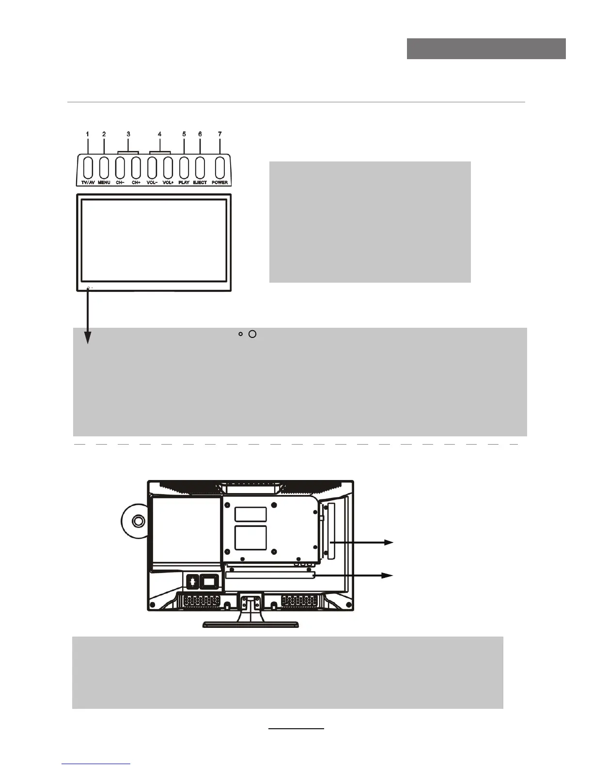(IR) Infrarood ontvanger: ontvangt de IR signalen van de afstandsbediening