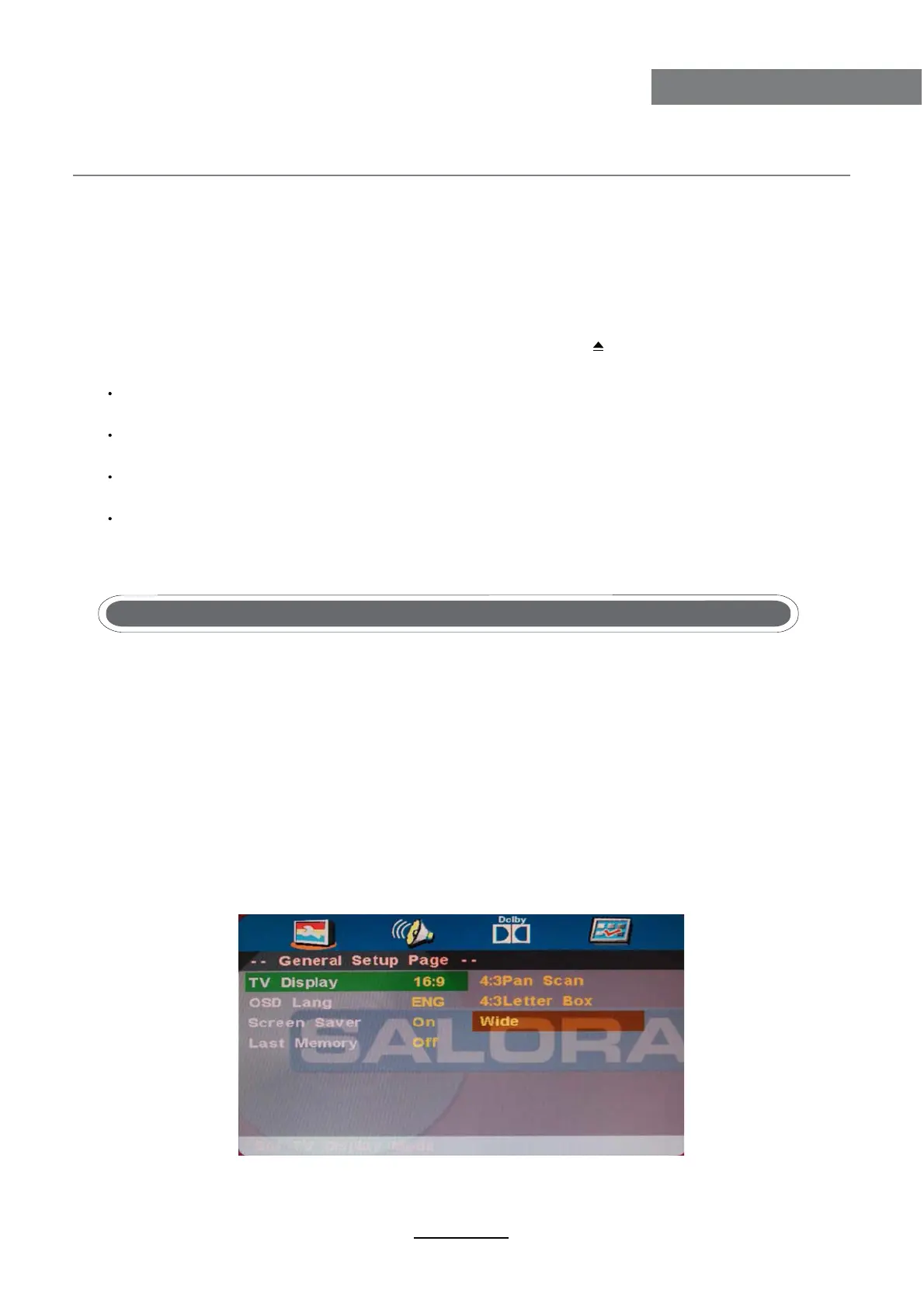 Choisissez ceci quand le lecteur DVD est connecté au téléviseur normal. L’image large est affichée